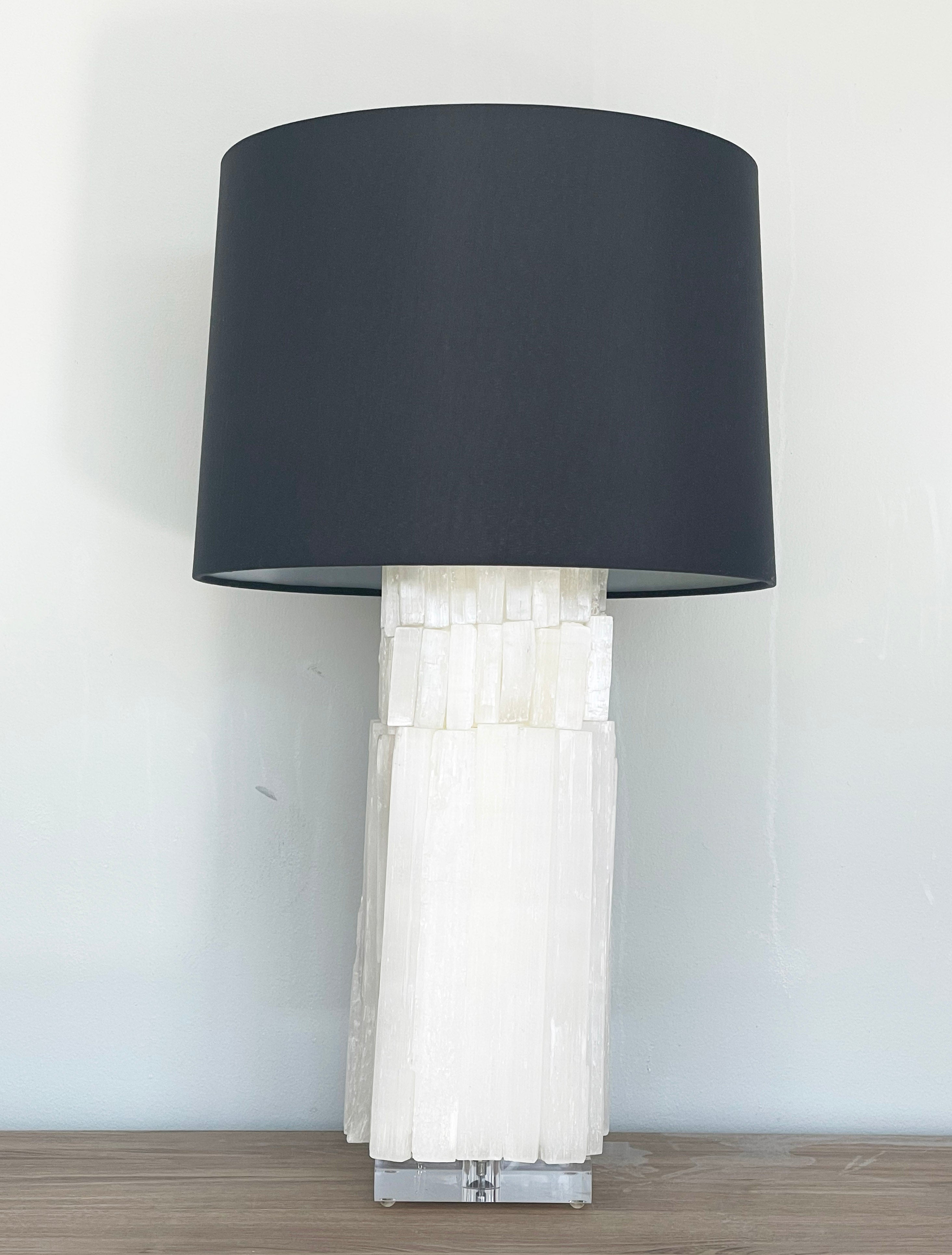 Each of our Immaculate Lamps are made from individually placed selenite logs and sticks. Each of lamp is completely unique as know two pieces are exactly alike.